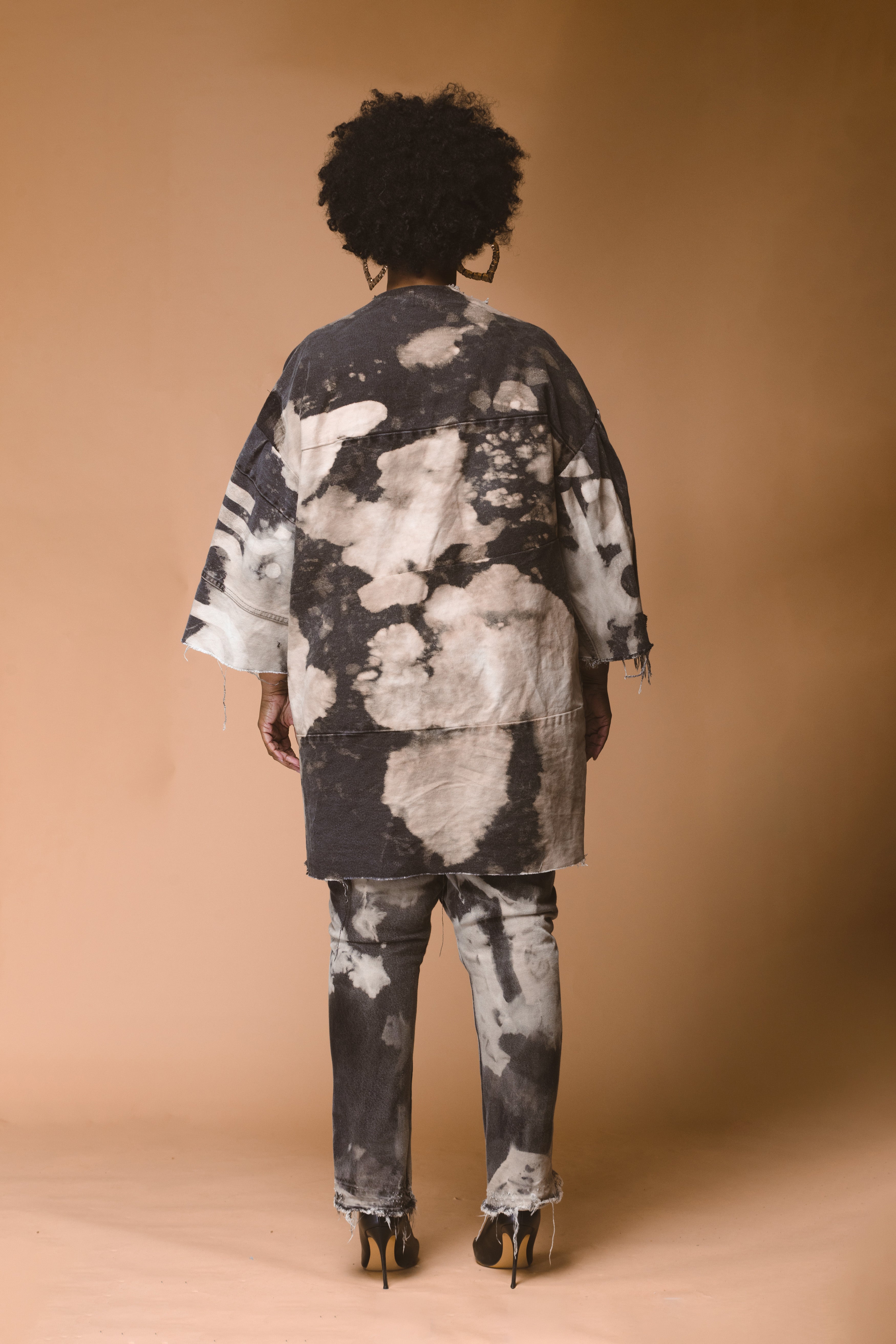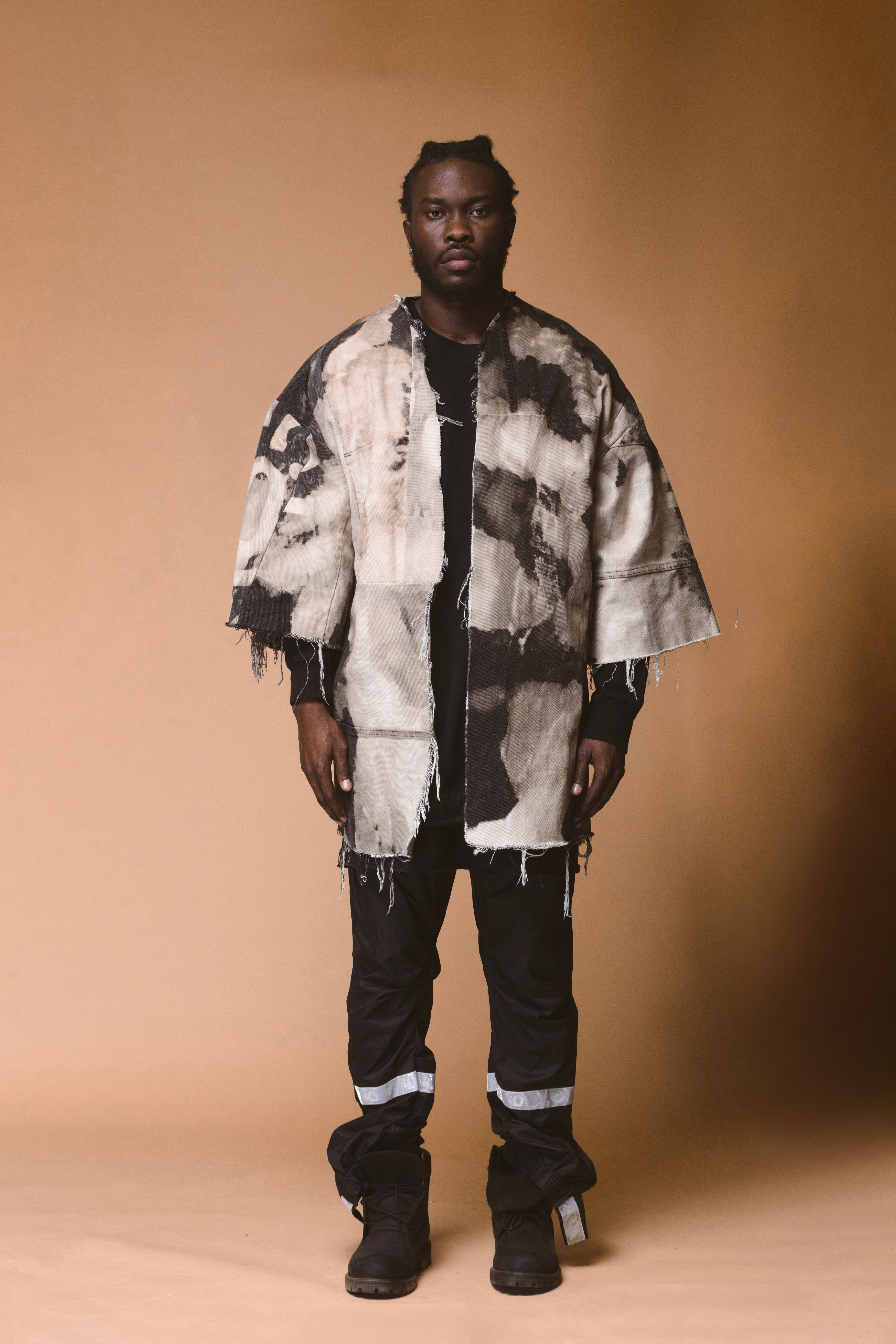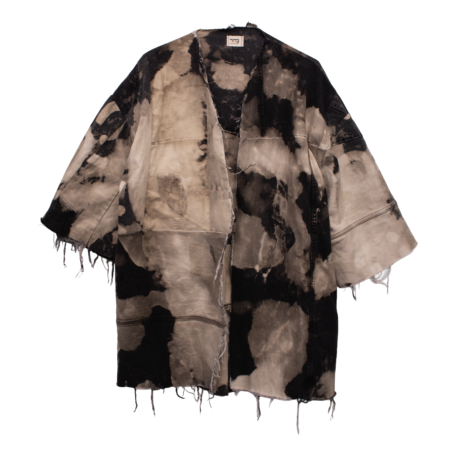 Oversized boxy silhouette and raw, frayed edges.