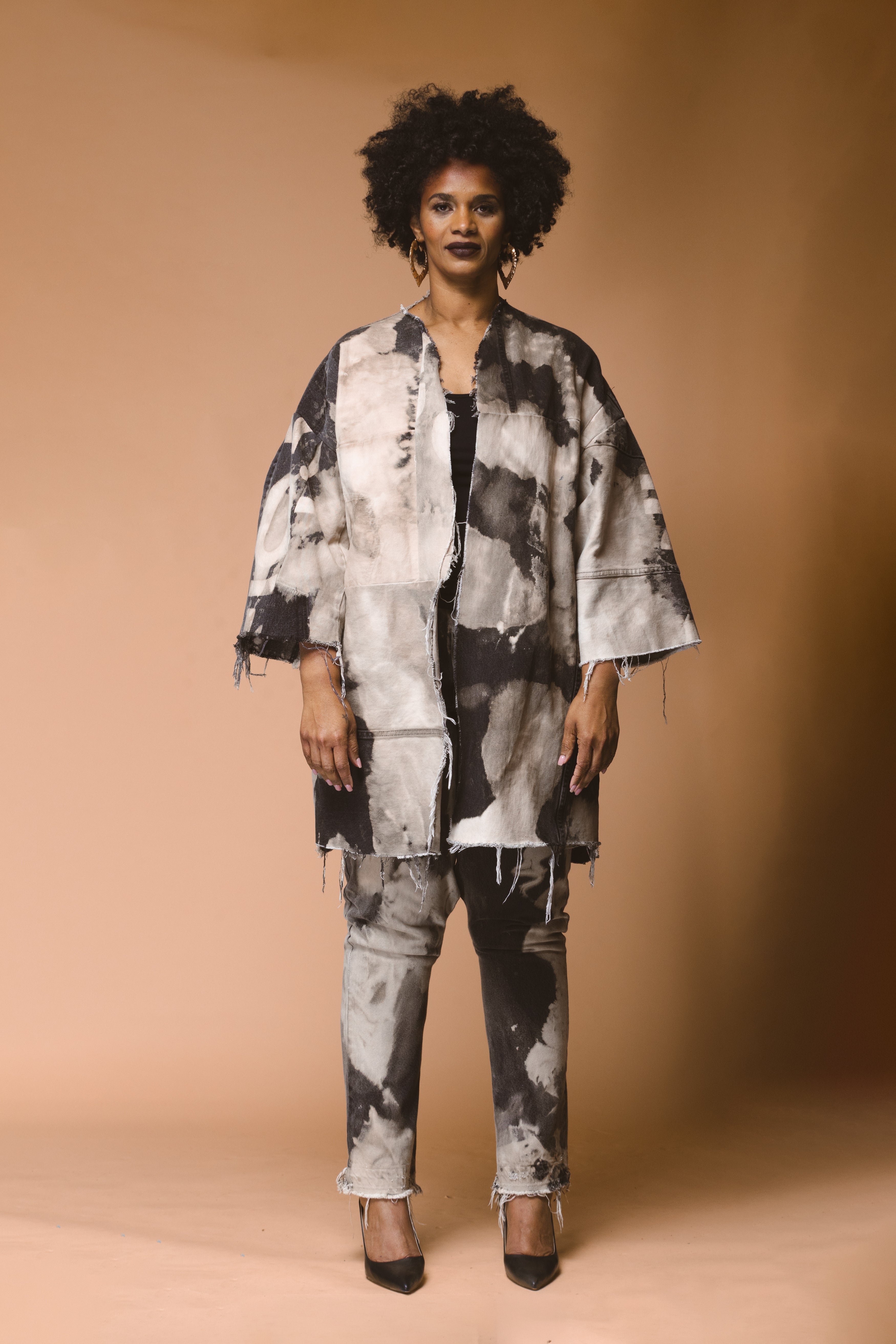 Hand-rinsed open construction jacket