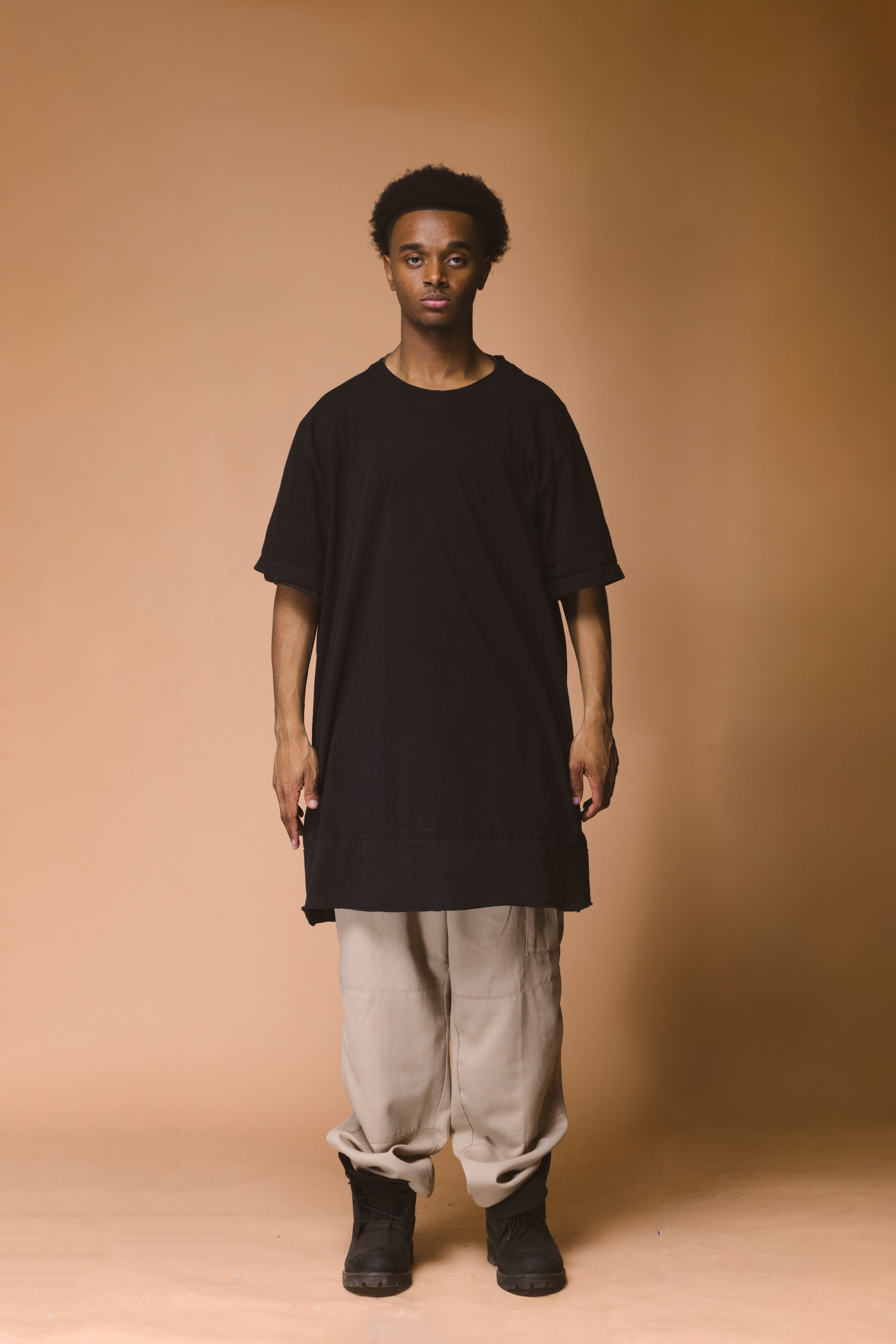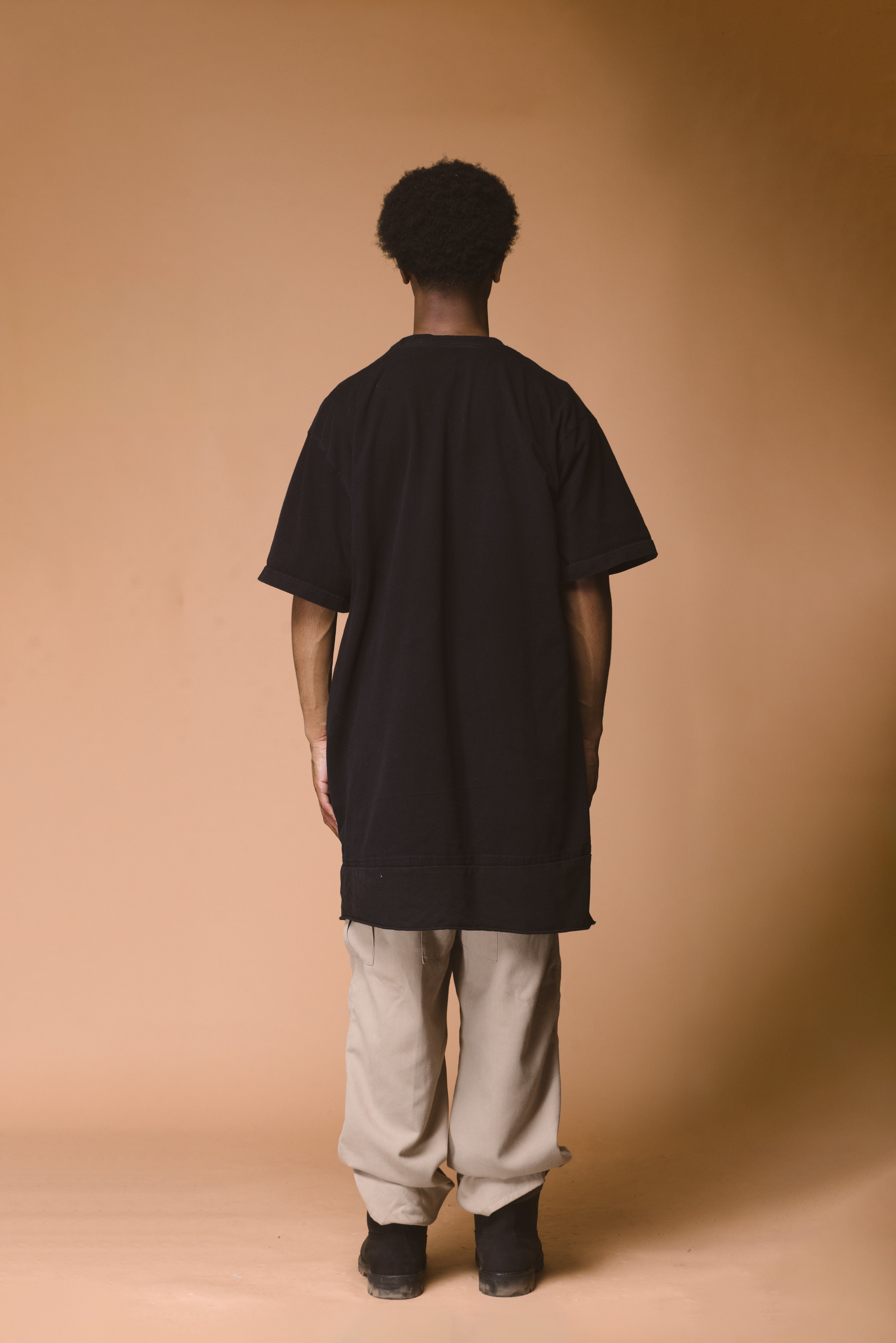 Clean, long line-cut crew tee designed for foundational wear