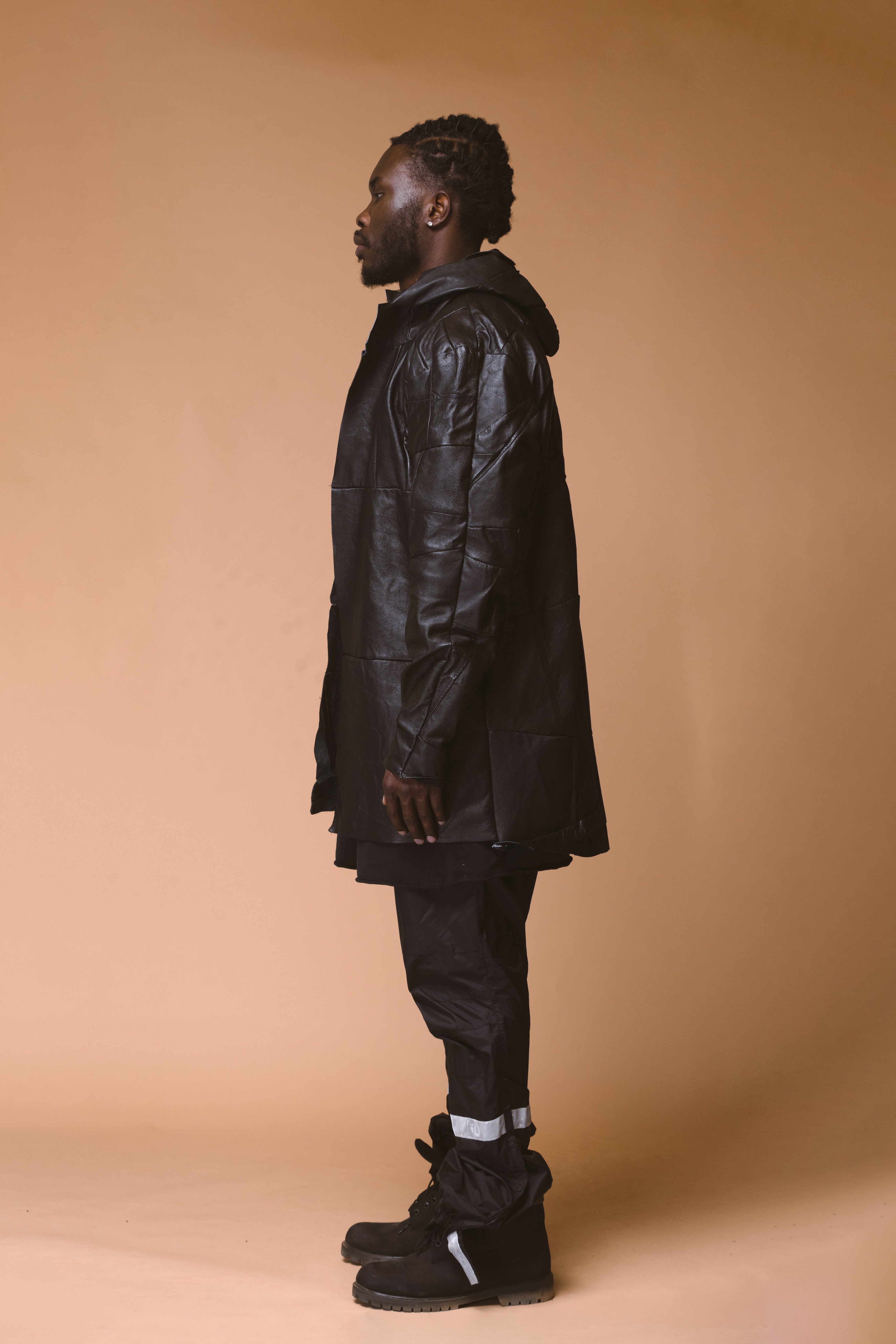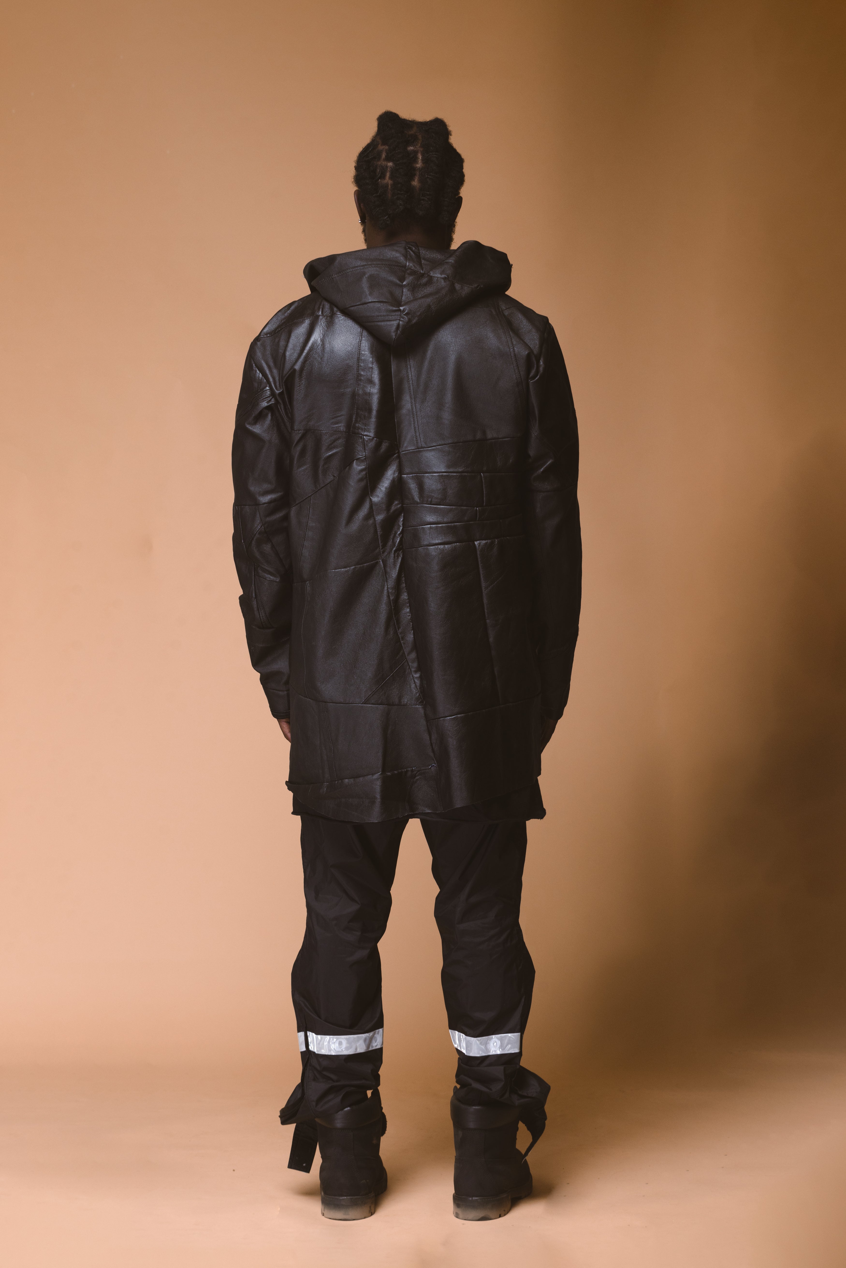 Oversized hood for a bold silhouette and built-in attitude, perfect for night city energy or stage moments.