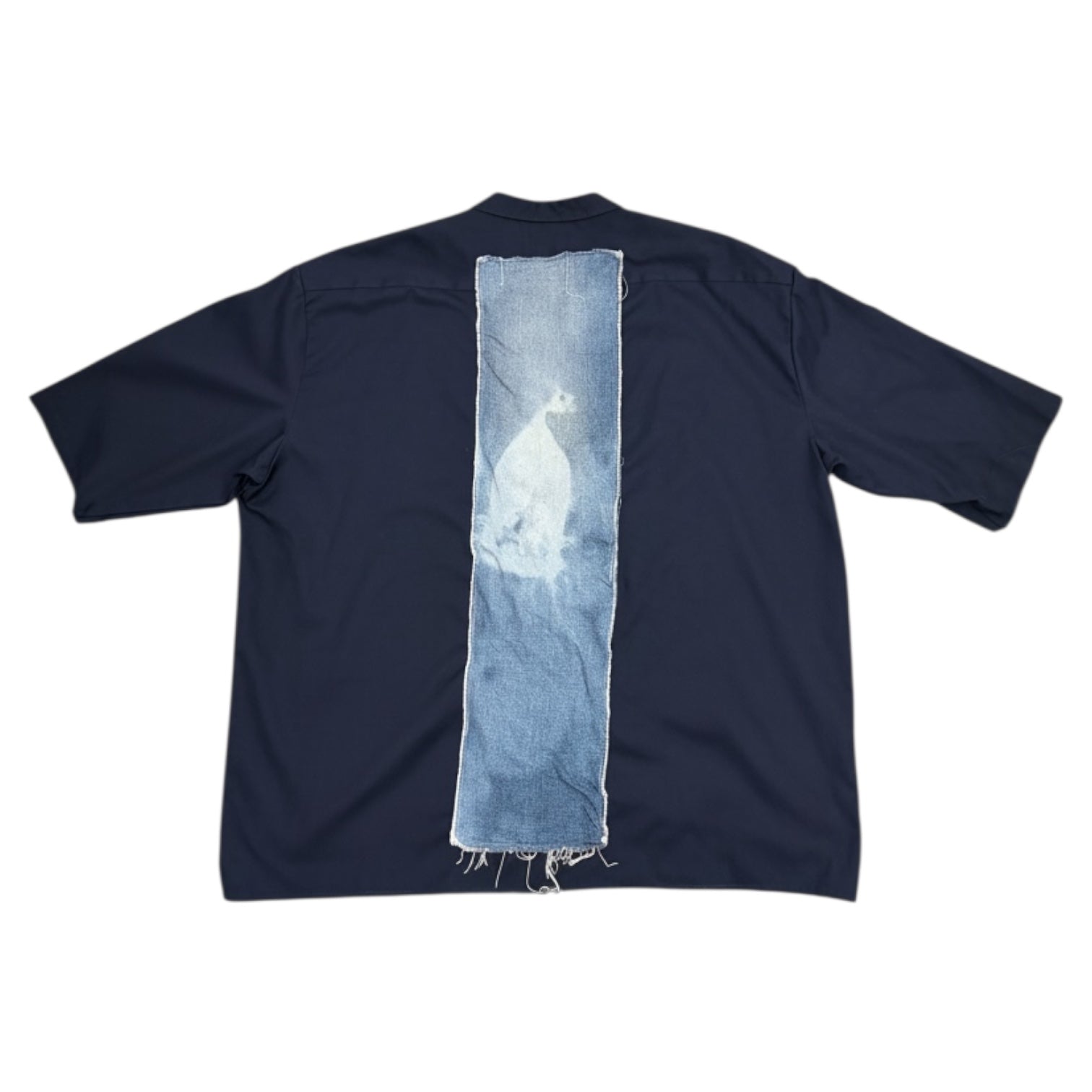 Single print denim applique on the back for graphic focus.