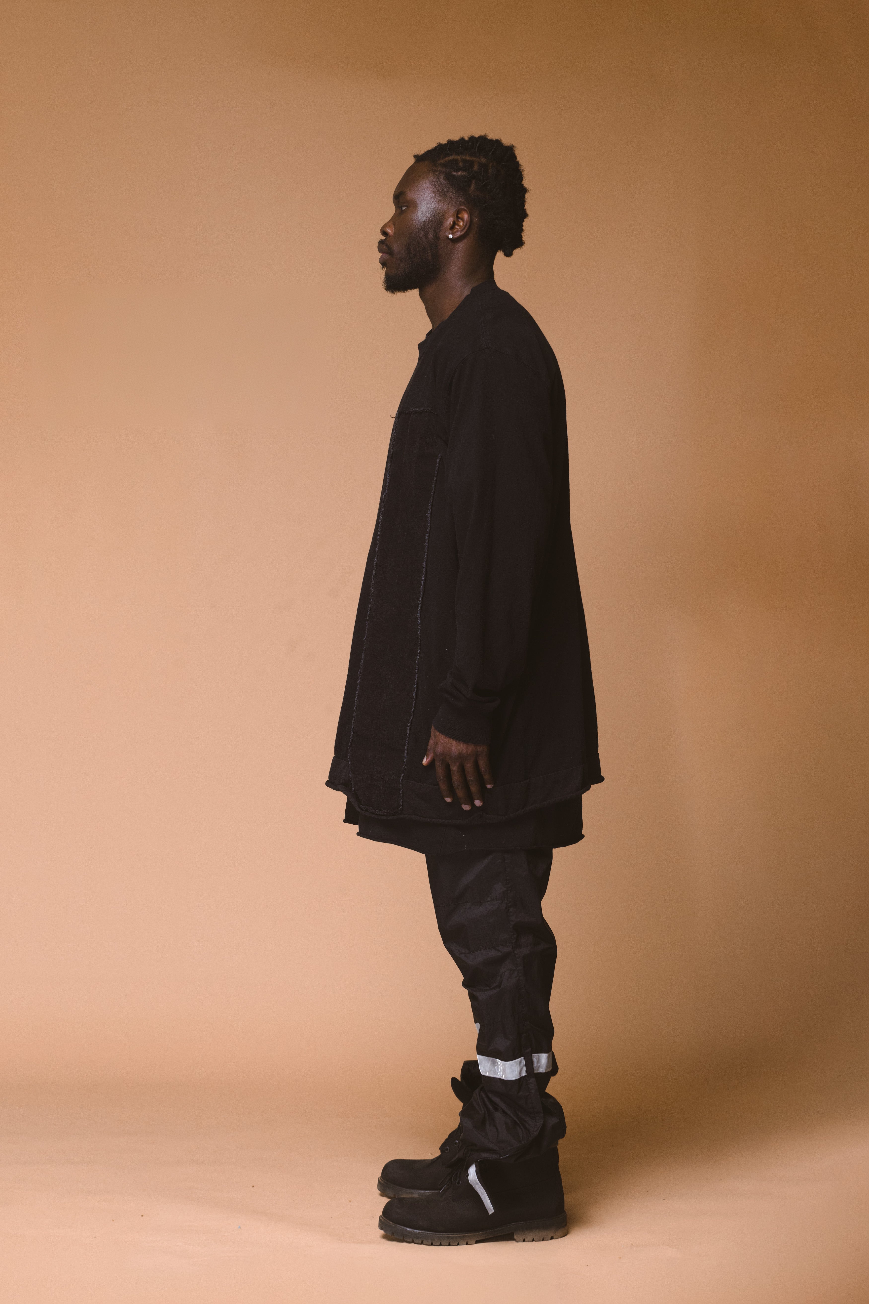 Featuring a raw-edged vertical panel appliqué running from chest to hem